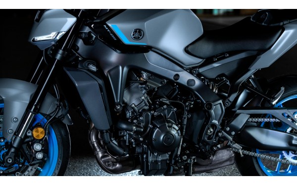 Kompaktní konstrukce tlakově litého hliníkového rámu CF (controlled filling) představuje moderní koncepci ikonického uspořádání Deltabox, jež zajišťuje vysokou tuhost rámu pro vynikající zpětnou vazbu pro jezdce a stabilitu. Díky optimalizované konstrukci otočného čepu kyvné vidlice a lehkému a štíhlému rámu působí MT-09 uvolněněji a je tak ideálním partnerem na krátké i dlouhé vyjížďky. Každý gram se počítá.