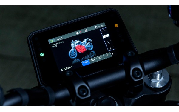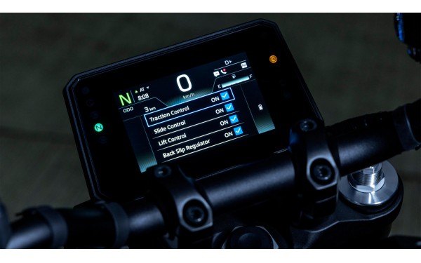 Plnobarevný 5palcový TFT přístrojový panel nabízí možnost výběru ze čtyř různých motivů podle vašich individuálních požadavků a jízdní situace a které můžete přepínat pomocí intuitivních spínačů na řídítkách. Svůj chytrý telefon můžete také propojit s obrazovkou TFT prostřednictvím bezplatné aplikace MyRide a přijímat oznámení o zprávách, hovorech a poslouchat hudbu. Prostřednictvím bezplatné aplikace Garmin StreetCross je k dispozici také kompletní mapová navigace, která vám usnadní každou cestu. Zůstaňte ve spojení.