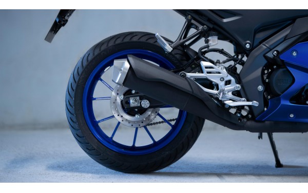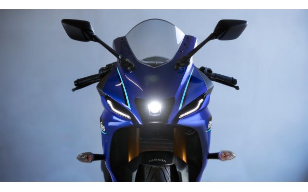 Aerodynamická kapotáž modelu R125 nové generace inspirovaná vítěznými závodními stroji Yamaha dodává tomuto lehkému supersportu působivý vzhled velkého motocyklu. Jeho agresivní maska řady R se vyznačuje přídí ve tvaru M inspirovanou motocyklem M1 MotoGP®, která podtrhuje jeho závodní původ. Nová generace barev Icon Blue, 70th Anniversary a Tech Black s dynamickou grafikou podtrhuje prémiové provedení motocyklu. Tohle není jen 125 cm³ - tohle je supersport.