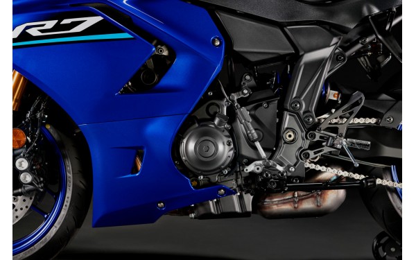 Motor R7 o objemu 689 cm³ dosahuje výkonu 73,4 k při 8 750 ot/min a vyznačuje se výraznou akcelerací a plynulým, lineárním točivým momentem. Jeho 270° klikový hřídel poskytuje citlivou odezvu s charakteristickým vrčením CP2, zatímco procesorem řízená škrticí klapka Yamaha (YCC-T) zajišťuje přesnou dodávku výkonu pro jisté ovládání při každém otočení zápěstí. Ať už na silnici nebo na závodní dráze - motor CP2 vám dá přesně to, co potřebujete.