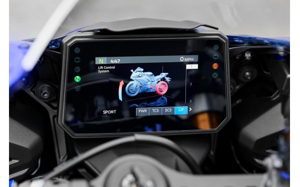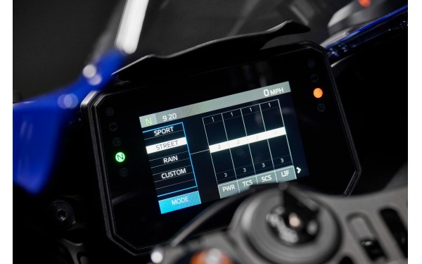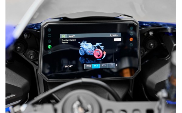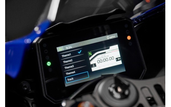 Nový 5palcový barevný TFT displej přináší do modelu R7 prémiový a moderní vzhled. Čtyři volitelné motivy umožňují přehledné zobrazení klíčových informací, včetně speciálního režimu Track, který upřednostňuje klíčové informace o výkonu s časovačem kol, když jste v aerodynamické pozici. Propojení s chytrým telefonem prostřednictvím aplikace MyRide od Yamahy doplňuje navigaci, oznámení a sdílení dat. Budete informováni, propojeni a budete mít vše pod kontrolou.