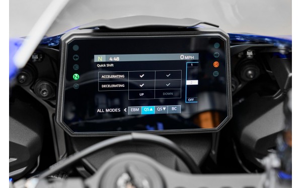 Nejnovější systém Quick Shift od společnosti Yamaha přináší rychlejší a plynulejší řazení, které je u modelu R7 nejhladší a nejsportovnější, jaké kdy bylo. Dvě volitelná nastavení umožňují volit mezi řazením nahoru a dolů bez spojky při zrychlování nebo zpomalování, přičemž přepracované komponenty převodovky zajišťují bezproblémový výkon na silnici i na závodní trati. Řaďte jako profesionál.