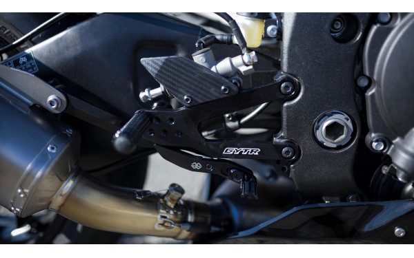 Specifikace modelu R1 GYTR připravená na závody zahrnuje závodní řídítka a závodní zadní sady pro dokonalou polohu těla a ovladatelnost. Pro větší pohodlí je tento okruhový stroj vybaven bezklíčovým víčkem palivové nádrže, vypínačem a paddockovým stojanem a háky. Každý detail je optimalizován pro závody.