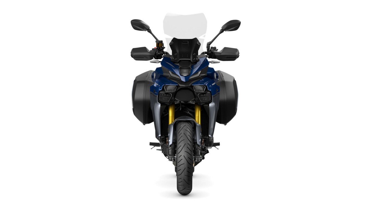 Aerodynamicky optimalizovaná přední kapotáž a čelní štít, vyvinuté v aerodynamickém tunelu, poskytují vynikající ochranu před větrem a minimalizují turbulence. Elektronicky ovládaný štít lze plynule nastavit v rozsahu 100 mm pouhým stiskem tlačítka, což umožňuje přizpůsobit proudění vzduchu aktuálním podmínkám a preferencím jezdce.