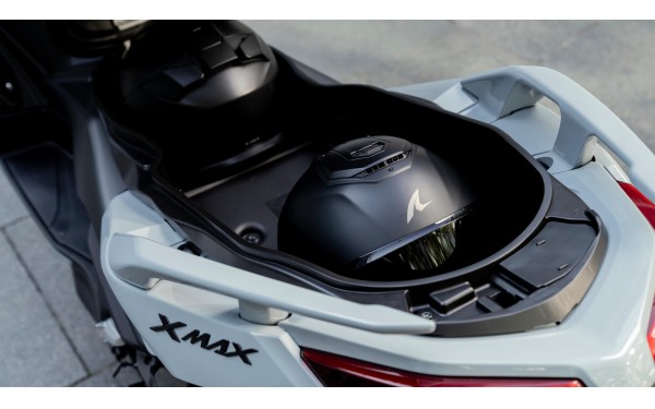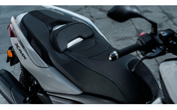 Kombinace přirozené jízdní polohy s tvarovaným dvojitým sedlem, velkou plochou pro nohy a vysokým elektricky ovládaným štítem zajišťuje vynikající pohodlí – ať už jedete sami, nebo vezete spolujezdce. Další exkluzivitou modelu Tech MAX+ je prošívání s grafitovými akcenty, potah sedla z imitace kůže a potahy víka úložné schránky z imitace kůže. Ať už jedete krátkou vzdálenost po městě nebo dlouhou trasu na dálnici, XMAX 125 Tech MAX+ vám zajistí maximální komfort po celou dobu jízdy. Ergonomie je navržena tak, aby minimalizovala únavu při dlouhých cestách a zároveň poskytovala dostatečnou oporu a kontrolu při dynamické jízdě. Prostorný interiér nabízí dostatek místa i pro vyššího jezdce a spolujezdce, takže si každou cestu užijete naplno.
