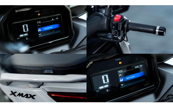 Když investujete do modelu XMAX 125 Tech MAX+, můžete očekávat to nejlepší z hlediska stylu, kvality a technologie. Díky exkluzivním vyhřívaným rukojetím a vyhřívanému sedlu je Tech MAX+ také jedním z nejpohodlnějších sportovních skútrů ve své třídě. Společně se vzduch rozrážejícím štítem a dynamickou sportovní kapotáží, vyhřívanými rukojeťmi a sedlem je tento špičkový model ideálním modelem pro celoroční dojíždění a volný čas. Vyhřívané rukojeti oceníte zejména při ranním dojíždění do práce v chladných měsících, kdy vám zajistí teplé a pohodlné ruce bez nutnosti tlustých rukavic. Vyhřívané sedlo s několika stupni intenzity vytápění poskytuje komfort i při dlouhých cestách v chladném počasí. Díky těmto funkcím můžete používat svůj XMAX 125 Tech MAX+ po celý rok, aniž byste museli omezovat své jízdy kvůli počasí.