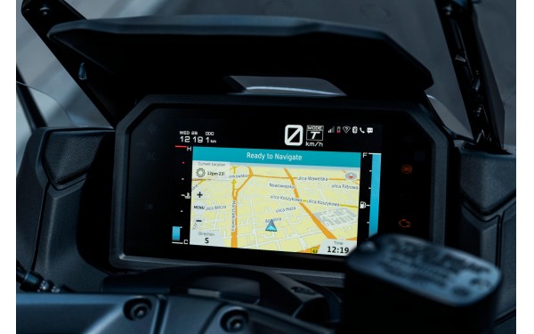 Prvotřídní 7palcový TFT displej vytváří špičkové rozhraní mezi člověkem a strojem – nabízí širokou škálu snadno čitelných informací, výběr motivu palubních přístrojů a intuitivní ovládání skútru TMAX Tech MAX. Navigace Garmin s kompletní mapou je nyní zcela zdarma prostřednictvím aplikace Garmin Motorize*. Díky funkcím, jako je doprava, počasí a body zájmu, budete mít na každé cestě veškeré informace. Displej je snadno čitelný za všech světelných podmínek a poskytuje vám všechny důležité informace na jednom místě. Navigace vám pomůže vyhnout se dopravním zácpám, najít nejbližší čerpací stanici nebo objevit zajímavá místa po cestě. Díky integraci s TFT displejem máte všechny informace přímo před očima bez nutnosti odklánět pohled od silnice. Nikdy se neztratíte a vždy najdete tu nejlepší trasu pro vaši cestu. (* Plná mapová navigace Garmin je k dispozici zdarma pro vhodné modely TMAX, ale není nabízena ve všech zemích. Některé navigační funkce nejsou dostupné ve všech zemích.)
