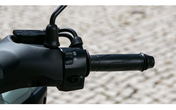 Pro větší bezpečnost při parkování na nerovných nebo svažitých místech je Tricity 155 vybaven snadno ovladatelnou parkovací brzdou. Parkovací brzda je ideální pro parkování na svahu nebo při delším stání, kdy nemusíte držet brzdu. Tento praktický prvek oceníte zejména při parkování ve městě, kde často parkujete na svažitých ulicích. Parkovací brzda zajišťuje, že váš skútr zůstane bezpečně na místě, i když zaparkujete na nerovném povrchu. Ovládání je jednoduché a intuitivní, takže můžete zaparkovat s jistotou a klidem.