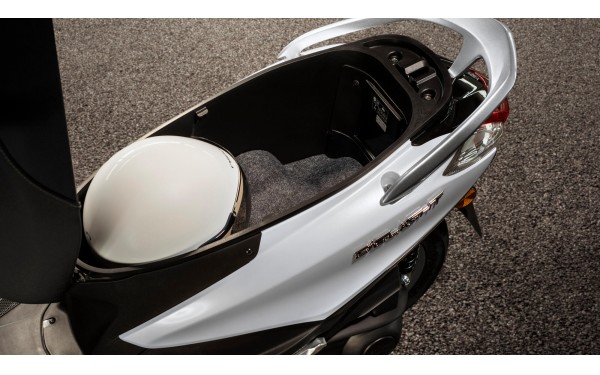 D'elight má pod sedadlem velký úložný prostor. Ve skutečnosti patří mezi málo skútrů své třídy, do něhož lze uložit integrální přilbu. Když jste na cestě, je toto místo ideální pro umístění osobních věcí. Skútr navíc můžete využít, i když potřebujete vyrazit do obchodů a dokoupit si pár chybějících potravin. Tento praktický úložný prostor je ideální pro každodenní dojíždění do práce, nákupy nebo víkendové výlety. Vše, co potřebujete, máte vždy po ruce. Nemusíte se starat o to, kam uložit přilbu při krátkých zastávkách, a máte dostatek místa i pro nákup nebo pracovní tašku. Prostorná úložná schránka je praktickým řešením, které oceníte každý den.